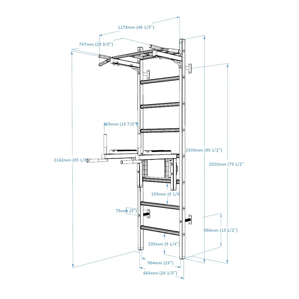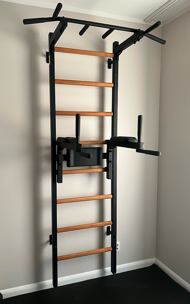 NOTE: if you are planning to use a pull-up bar, you will need to have at least 20-25 cm (7 7⁄8″ – 9 7⁄8″) between the ceiling and the top of the pull-up bar to make sure your head doesn’t hit the ceiling when doing pull-ups. Please take this into account before the installation. (BenchK offers wall bars of different heights so that you can choose what suits you best).