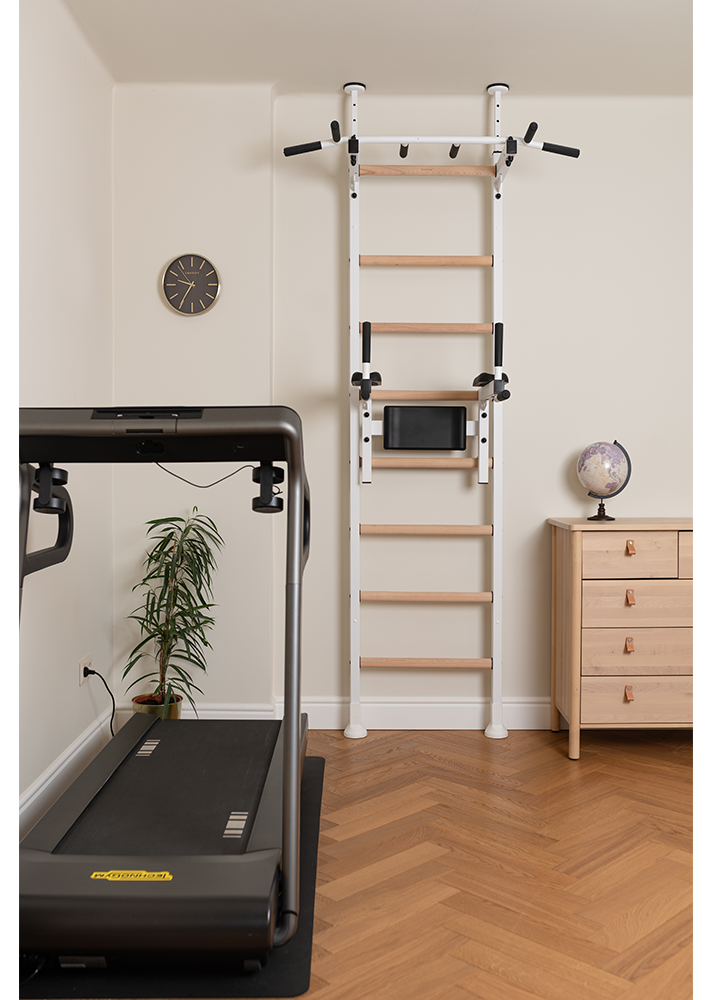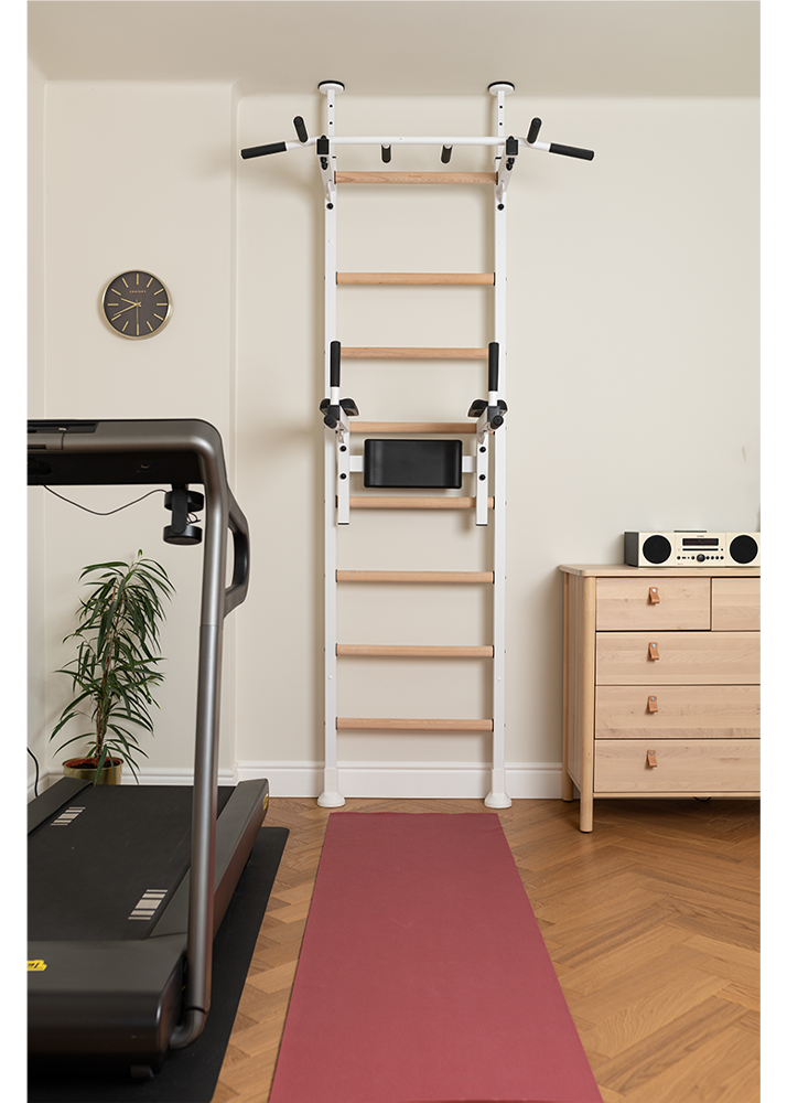 BenchK 522 is a wall bar with a permanently mounted pull up bar.
